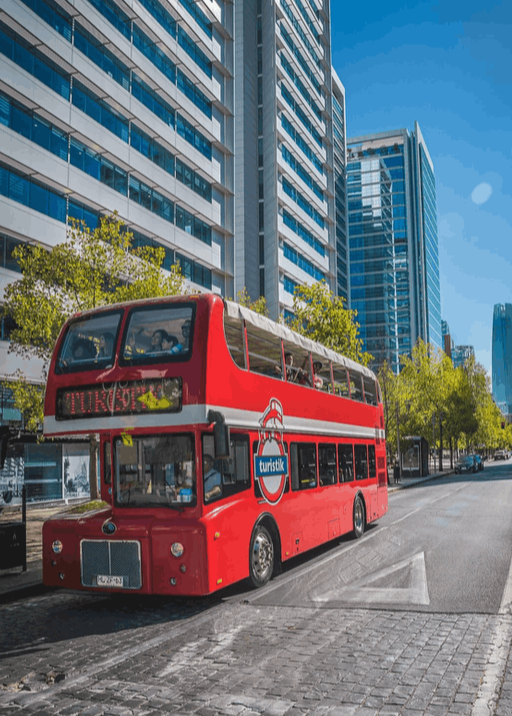 O Tour é audio guiado, isso significa que você receberá fones de ouvido no primeiro embarque que será feito através de QR-Code. O ônibus circula durante todo o dia pela cidade com 10 paradas em pontos turísticos importantes, incluindo o Palácio La Moneda, Catedral, Cerro San Cristóbal, parque Bicentenário, pátio Bellavista entre outros.